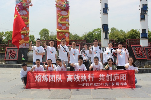 - 发布时间:2019-05-11 来源:庐阳产发为提升产发队伍的良好形象,提高员工身体素质,丰富企业文化活动,增强团队凝聚力,拿出“熔炼团队,高效执行”的精气神,庐阳产发于5月11日上午组织员工赴合肥非物质文化遗产园,开展主题为“熔炼团队·高效执行·共创庐阳”的团队建设活动。 一、破冰起航 随机将员工分为两支队伍,要求团队成员共同设计带有队伍特色的口号和队旗,并且开...